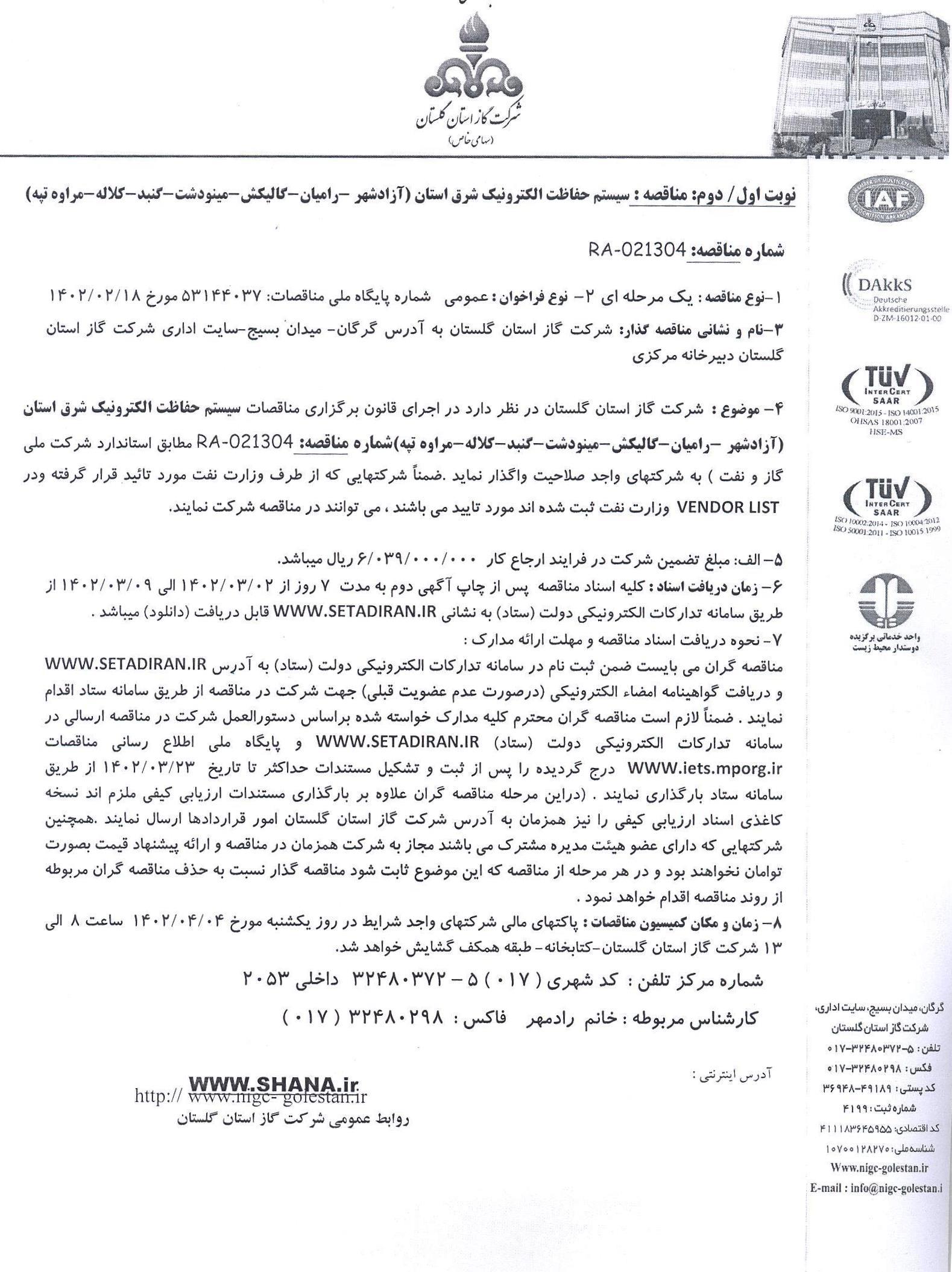 آگهی مناقصه عمومی- یک مرحله ای با ارزیابی کیفی
